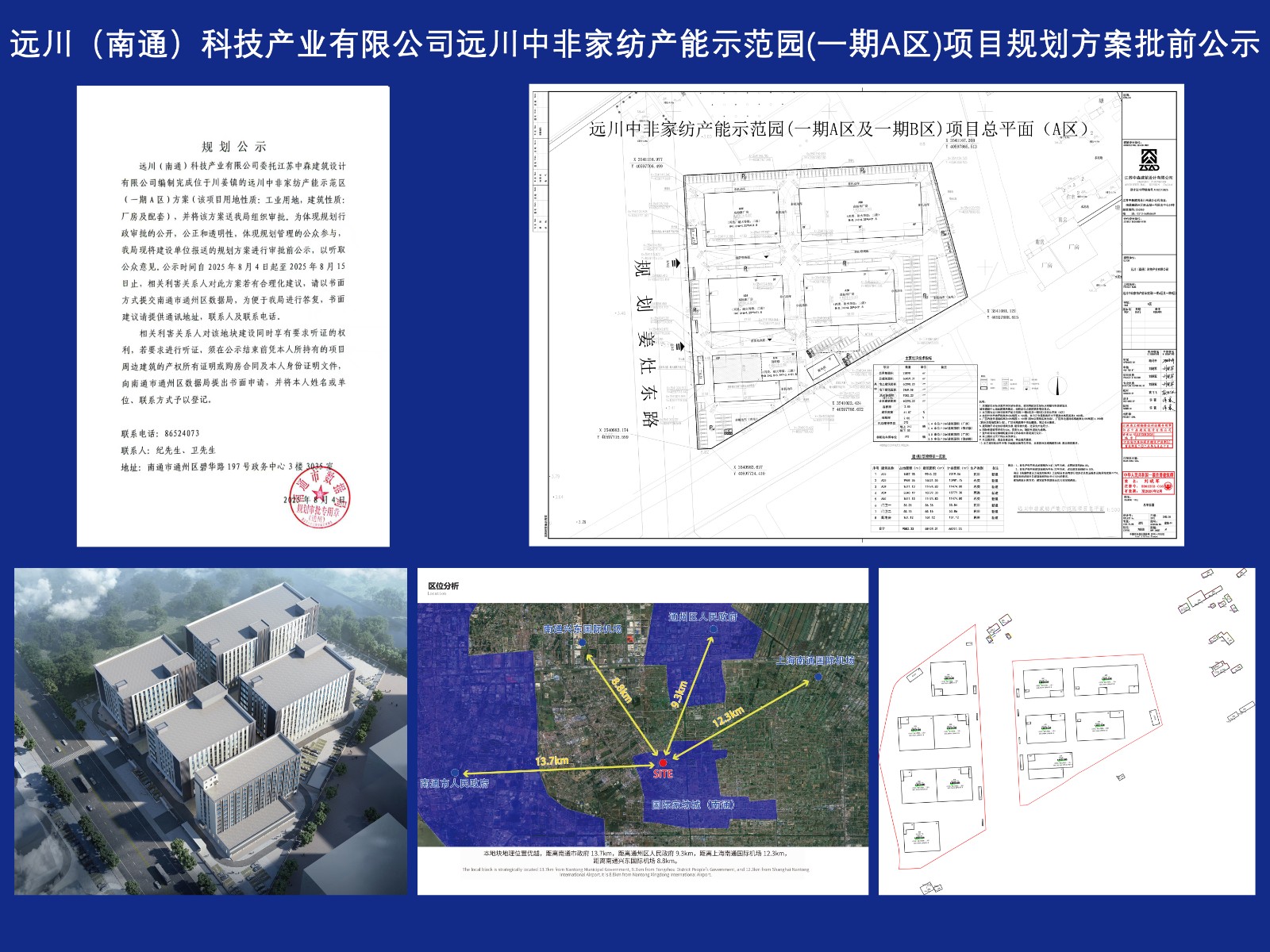 遠(yuǎn)川(南通)科技產(chǎn)業(yè)有限公司遠(yuǎn)川中非家紡產(chǎn)能示范區(qū)(一期A區(qū))規(guī)劃方案批前公示