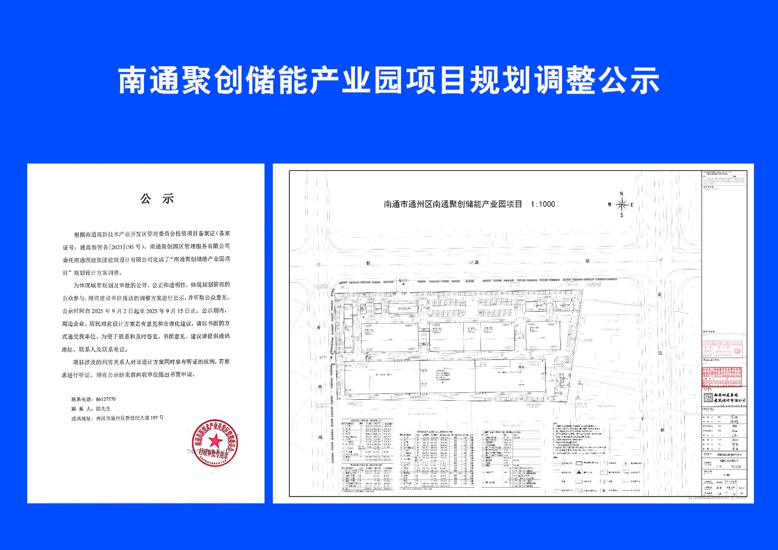 南通聚創(chuàng)儲(chǔ)能產(chǎn)業(yè)園項(xiàng)目規(guī)劃調(diào)整公示